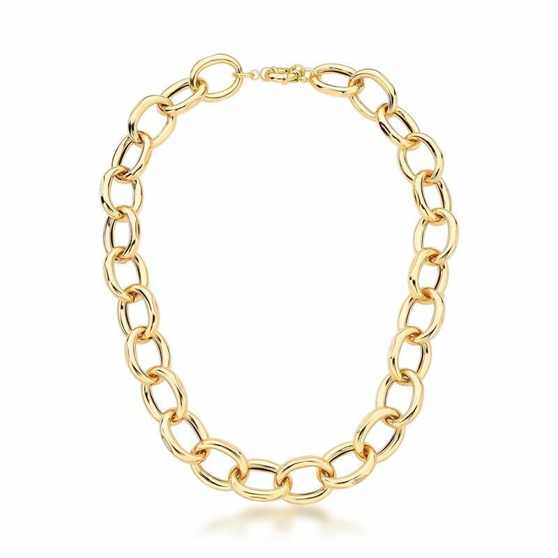 Colar em elos ovais lisos, banhado a ouro 18k.