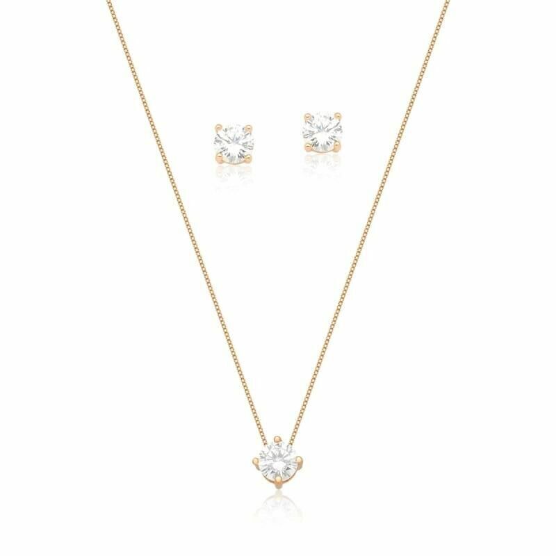 Conjunto brinco e colar ponto de luz, banhado a ouro 18k ou ródio branco. Um clássico atemporal.