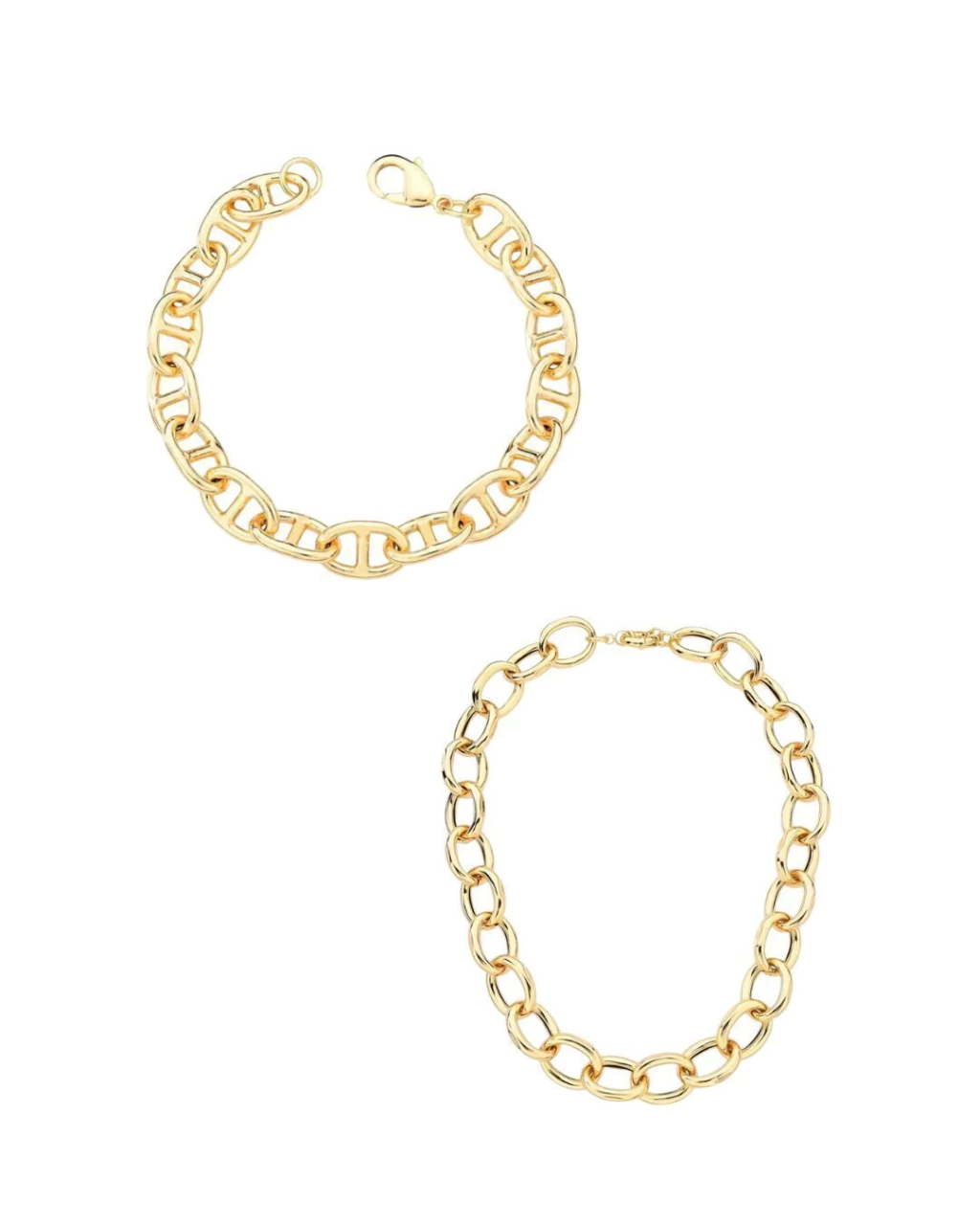 Kit moderno no banho de ouro 18k com pulseira e colar em elos.