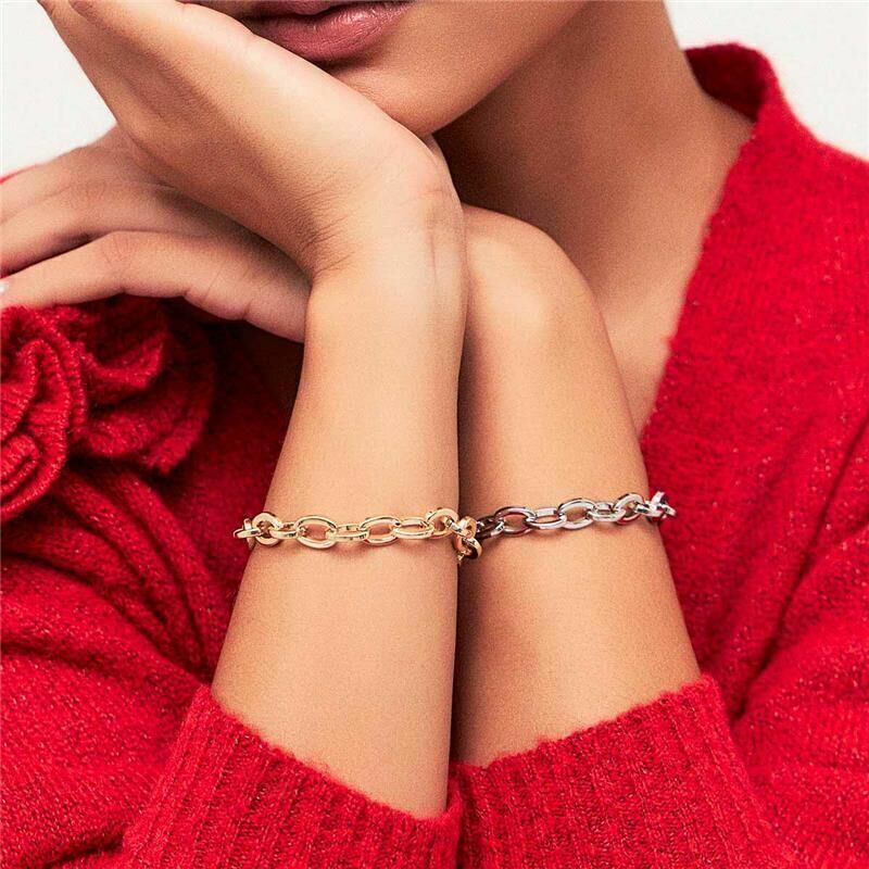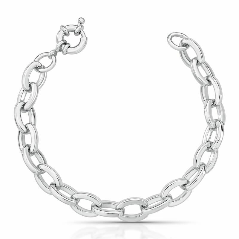 Pulseira de elos lisos e vazados com fecho boia, banhado a ródio branco. Os elos estão sempre presentes na alta joalheria, seja eles lisos ou cravejados, nunca saindo de moda, portanto tornaram-se atemporais e apostar neles pode ser uma ótima opção para deixar o look mais moderno.