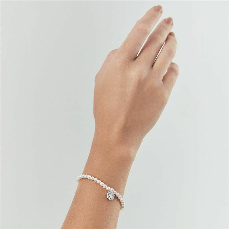 Pulseira com pérolas shell e pingente central de cristal redondo, cravejado com zircônias brancas. Feito em prata 925 e banhado a ródio branco.