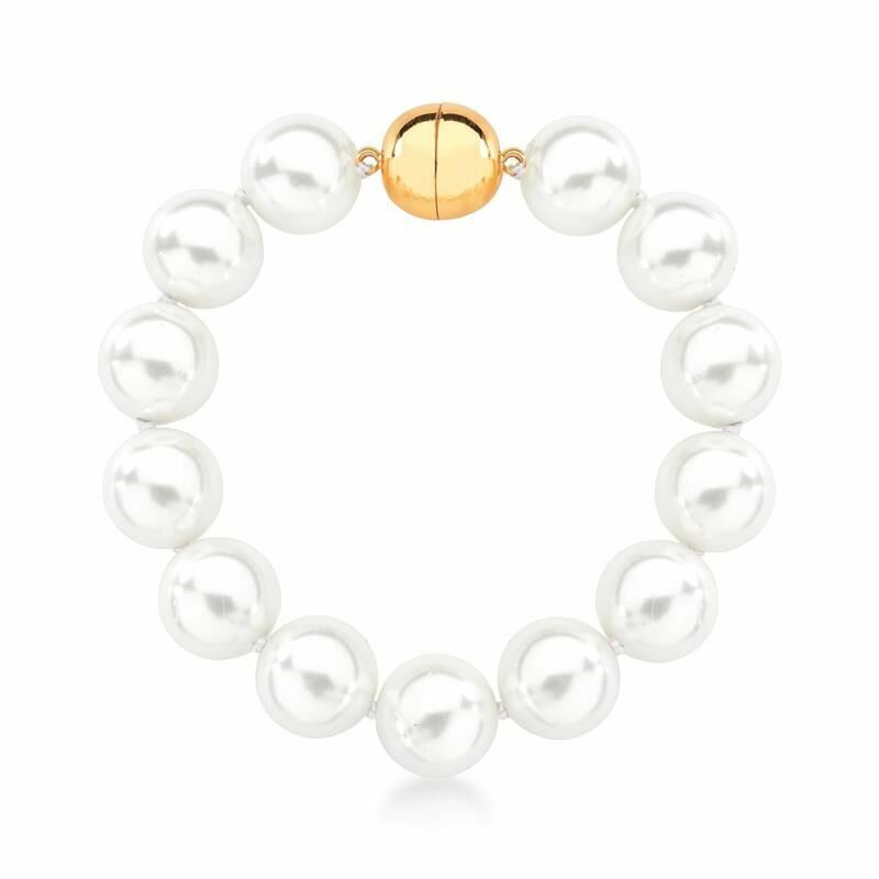 Pulseira em fio encerado com pérolas shell e fecho magnético banhada a ouro.